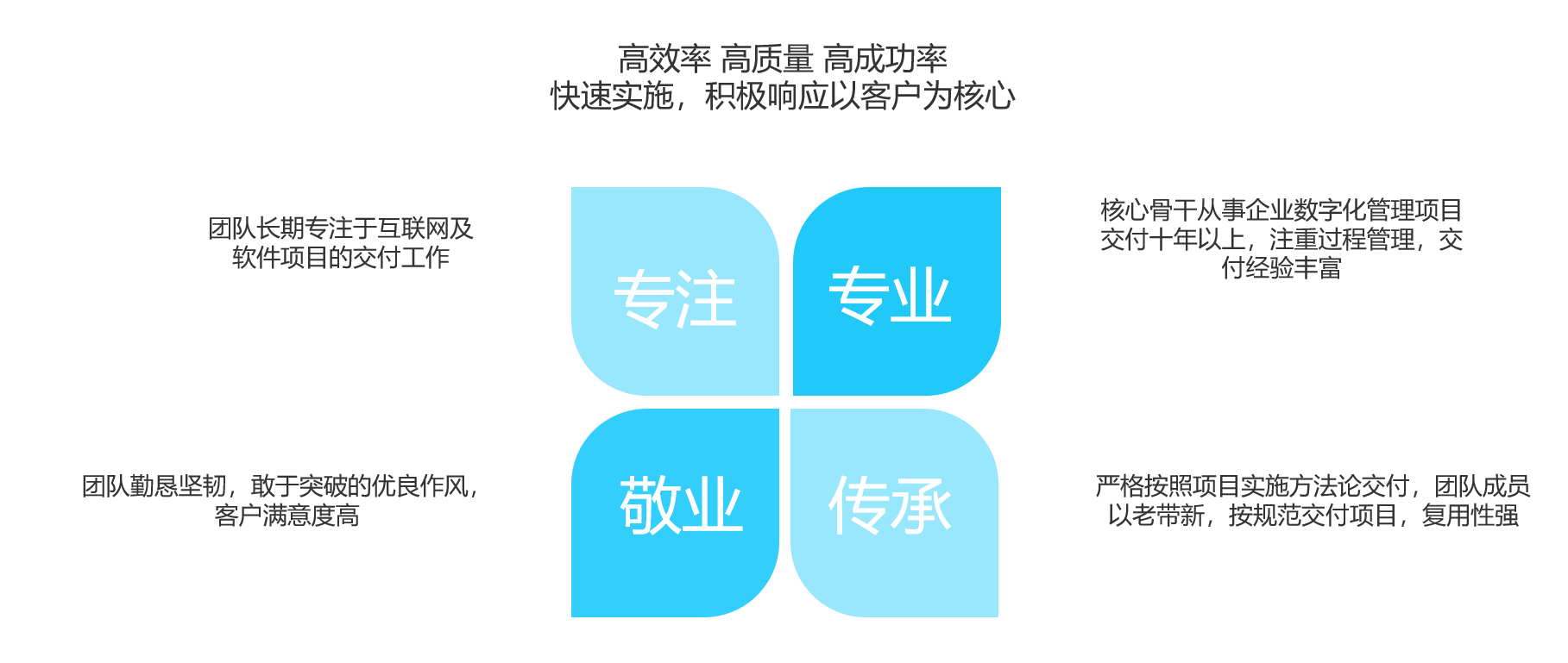 擁有一批有豐富交付經(jīng)驗的項目經(jīng)理,項目管理經(jīng)驗豐富
